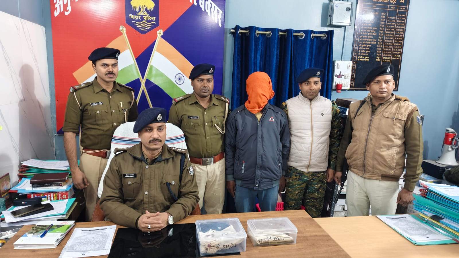 बक्सर अप टू डेट न्यूज़:बक्सर पुलिस का दोहरी सफलता मिली।अवैध हथियारों के साथ एक अपराधी गिरफ्तार, दूसरे के घर से रायफल बरामद की गई। जिले में अपराधियों और अवैध हथियारों के खिलाफ चलाए जा रहे विशेष अभियान के तहत राजपुर थाना पुलिस ने दो बड़ी कार्रवाइयों को अंजाम दिया है। सदर एसडीपीओ गौरव कुमार पाण्डेय के नेतृत्व में गठित एसआईटी टीम ने एक शातिर अपराधी को रंगे हाथ दबोचा, वहीं एक अन्य स्थान पर छापेमारी कर हथियारों का जखीरा बरामद किया है।